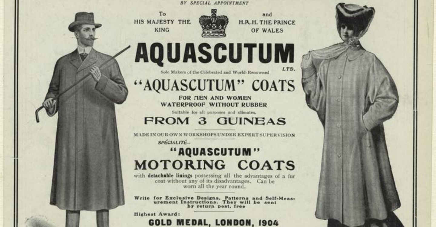 A diferencia de Baracuta, a principios del siglo XX Aquascutum ya era un símbolo británico de la realeza, y es que el Príncipe de Gales otorgó a la marca una Orden Real, lo cual hizo que esta estuviera directamente ligada a la Corona. Además, jugó un papel clave en la Primera Guerra Mundial tras desarrollar una gabardina o trench coat perfectamente adaptada a las trincheras.