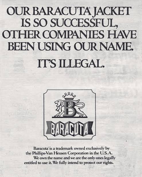 Durante sus primeras décadas, Baracuta no tenía un logo llamativo. Las etiquetas de las chaquetas eran principalmente funcionales, con texto sencillo que indicaba el nombre de la marca, el producto y el origen británico. El enfoque estaba más en la calidad de la prenda que en la marca como imagen.
