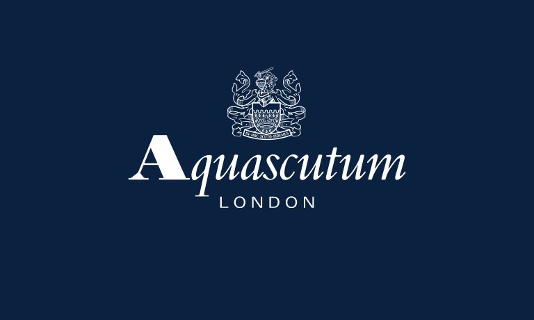 El logo es toda una declaración de intenciones. Aquascutum, al igual que Baracuta, se distingue por su Club Check, esos míticos cuadros que todos hemos visto en bufandas, gorras, camisas… Ahora es utilizado también en el logo, en el que podemos apreciar una nueva tipografía más moderna y una composición simple, perfectamente adaptada a los nuevos tiempos.